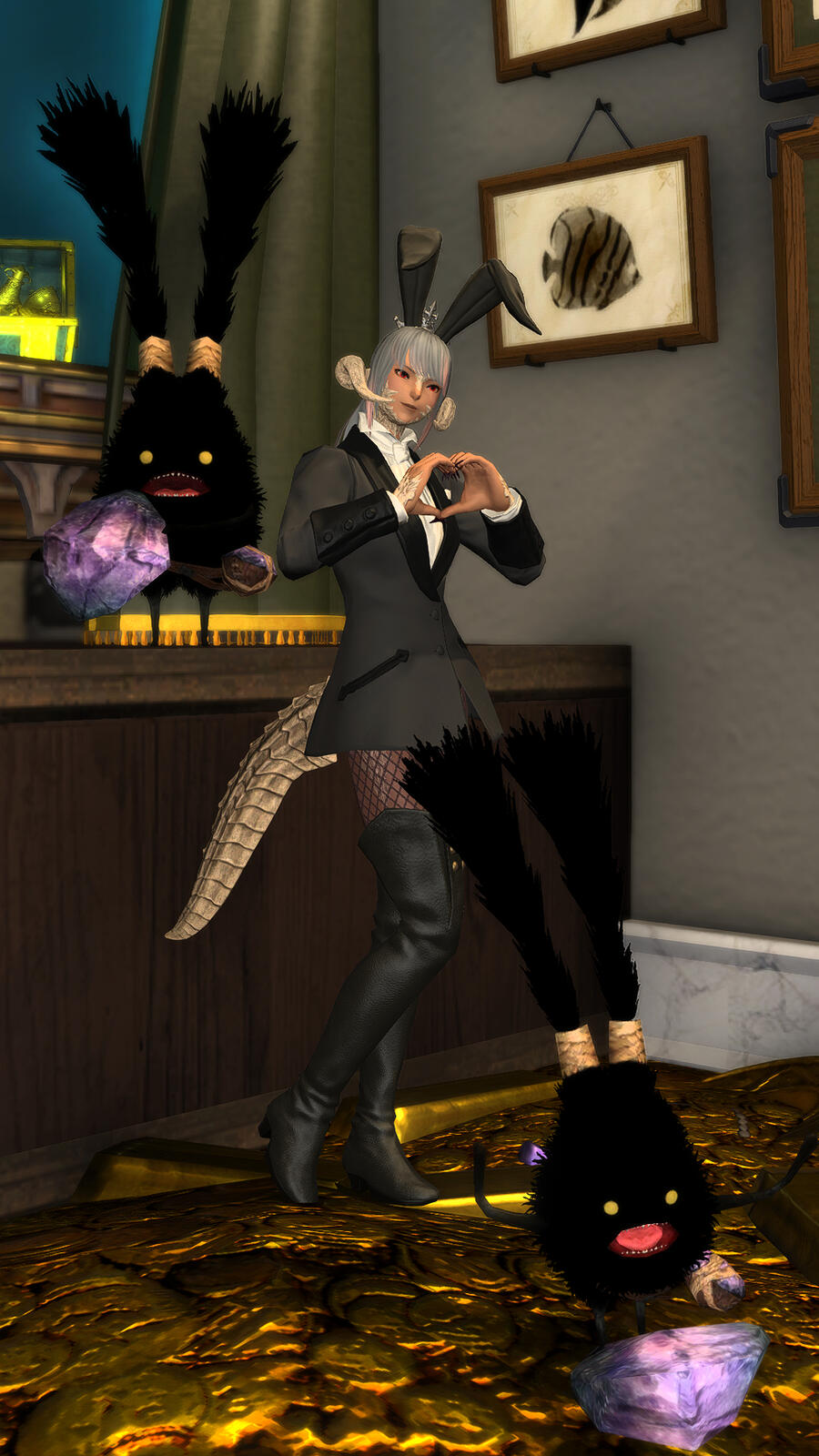 Eorzea's number one Spriggan rights activist, and owner-operator of the Tiggy the Spriggy Memorial Big Fish Aquarium.Generally unimpressed with the way mines in Ul’dah were treating their workers, Mokumi has taken it upon herself to fight for their rights- and by workers she of course means the spriggan. She has a point, to be fair- plenty of the little guys were being exploited to find and harvest rare and hard to reach gemstone veins in unsafe digs. Not on Mokumi’s watch, though! Her and her best friend Spriggy are here to ensure fair treatment for everyone working the mines!